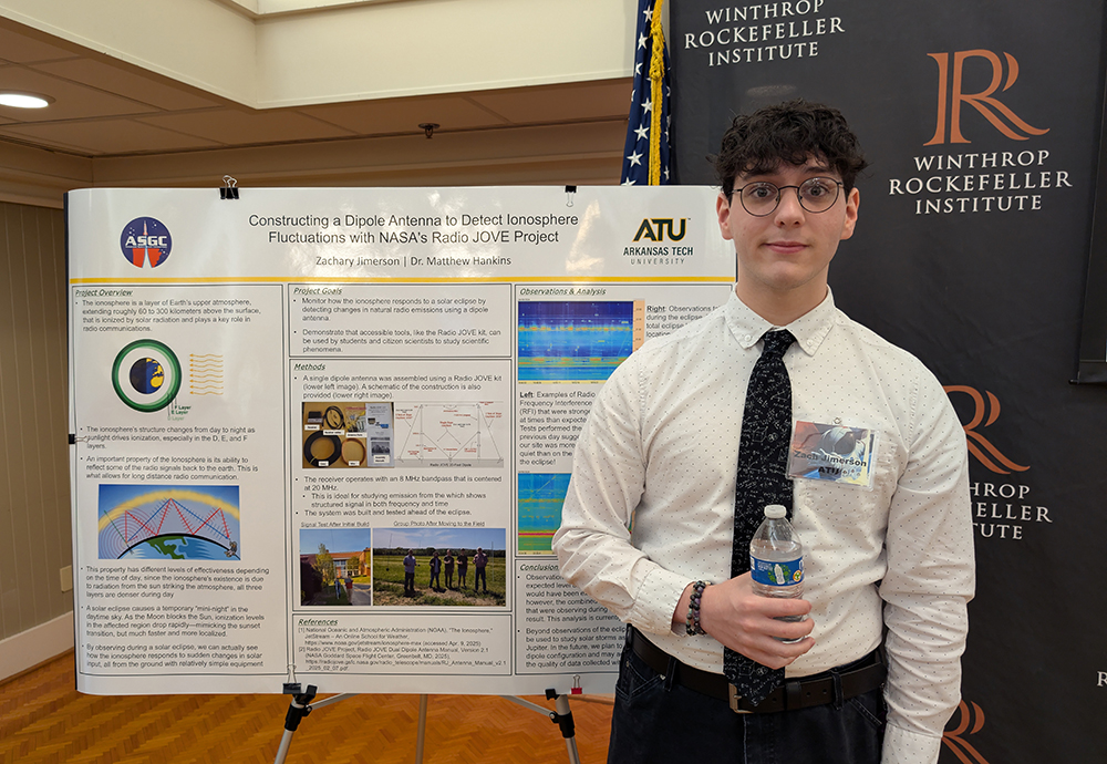 Arkansas Tech University students and faculty presented their research on Friday, April 11, at the 2025 Arkansas Space Grant Consortium Symposium at the Winthrop Rockefeller Institute on Petit Jean Mountain.