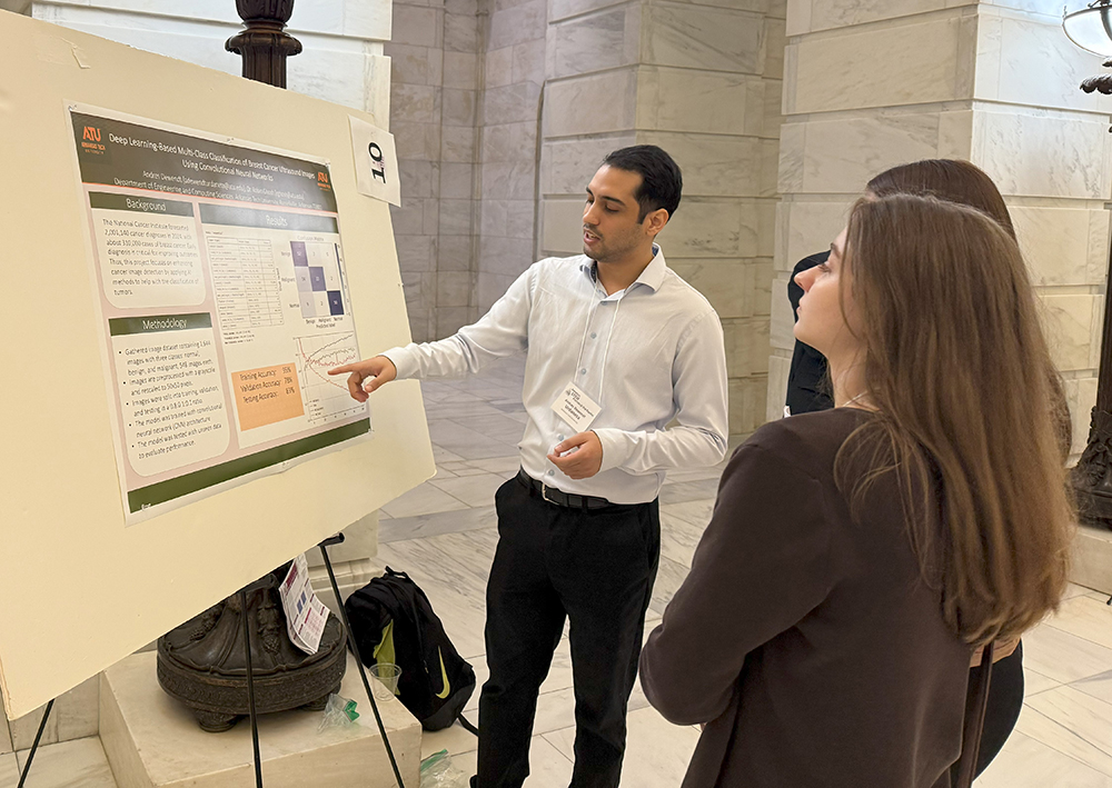 Students from the Arkansas Tech University College of Science, Technology, Engineering and Mathematics were among approximately 90 university students from around the state who participated in Arkansas STEM Posters at the Capitol 2025 on Thursday, Jan. 30.