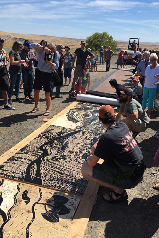 Harrington invested two weeks of his summer creating a 4-foot by 6-foot woodcut that depicts one portion of the 220-mile stretch of the Columbia River from the Willamette River confluence to the Snake River confluence.