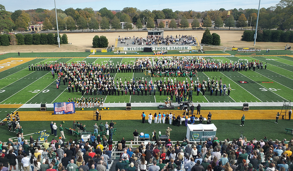 The annual event provides high school and junior high band students from around Arkansas and beyond with the chance to perform with the ATU marching band, “Arkansas’ Band of Distinction,” during an Arkansas Tech home football game.