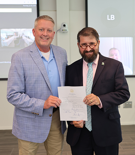 Cory Cox of Perryville was sworn in as a member of the Arkansas Tech University Board of Trustees by Pope County Judge Ben Cross on Thursday, June 20.