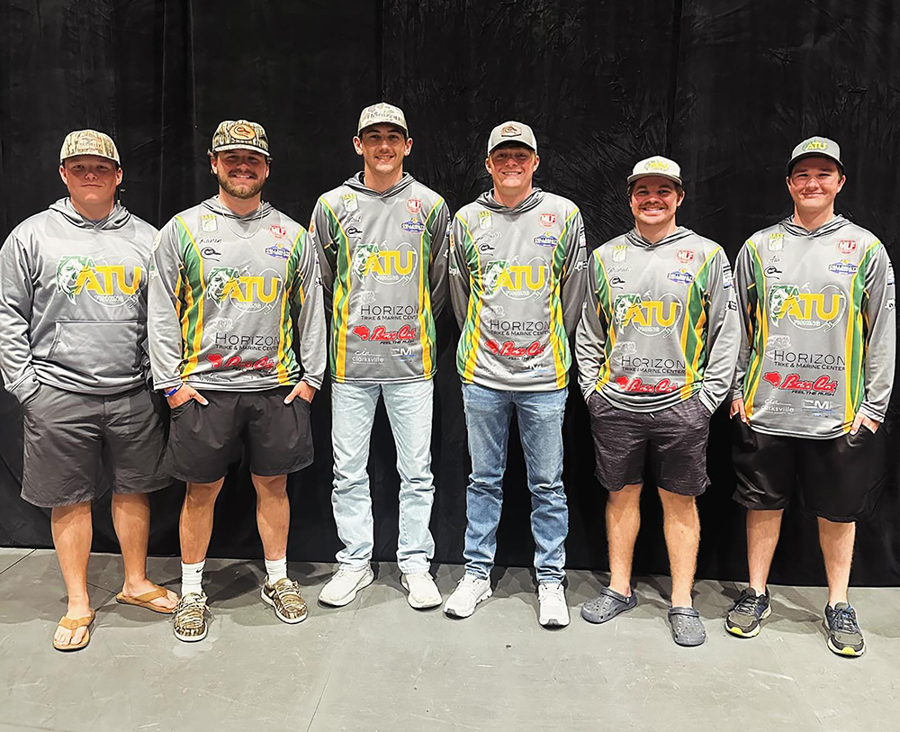 The ATU Fishing Club will be represented by (photographed from left-to-right) Cody McEntire of Walnut Ridge, Kanon Harmon of Haskell, Mat Higby of Lamar, John Foster Case of Clarksville, Michael McCarty of Cabot and Asa Chism of Benton during the event, which is presented by Yeti and hosted by Experience Kissimmee.
