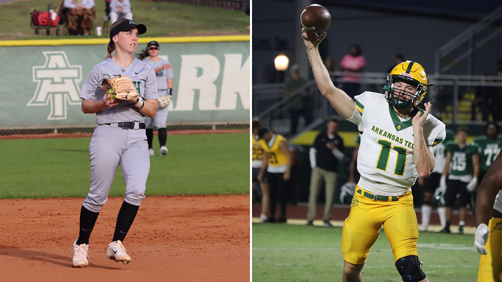 Jalei Oglesby earned the Jeanice Falls Award as the most outstanding senior female athlete at Arkansas Tech University and Jesus Zizumbo earned the John Tucker Award as the most outstanding senior male athlete at ATU for the 2022-23 academic year.