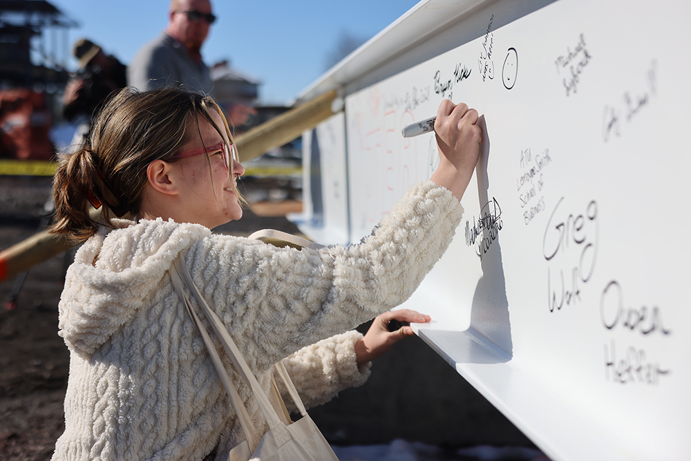 Members of the ATU community had the opportunity to sign a steel beam before it was lifted by crane to the facility’s highest point and installed on the north side of the building.