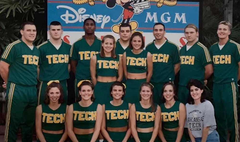 Group photo of the Arkansas Tech University cheerleading squad in 1999, which up until this year was the most recent group from Arkansas Tech to compete at NCA Nationals.