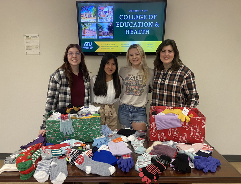 Arkansas Tech University student organization Educators Rising collected and donated more than 300 winter clothing items to the Pope County Foster Care Coalition at the conclusion of the fall 2023 semester.