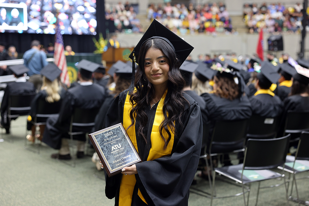 She graduated from ATU-Ozark in spring 2025 with an Associate of Applied Science degree in business technology.