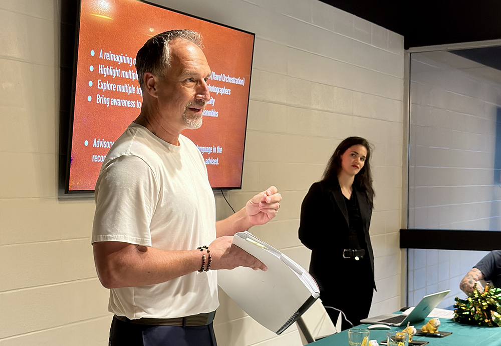 Belongia, ATU professor of music and director of bands, and Robertson, ATU assistant professor of music, discussed the cultural influences behind “Amerykahn Graffiti,” a 2025 composition for wind band by Katahj Copley.