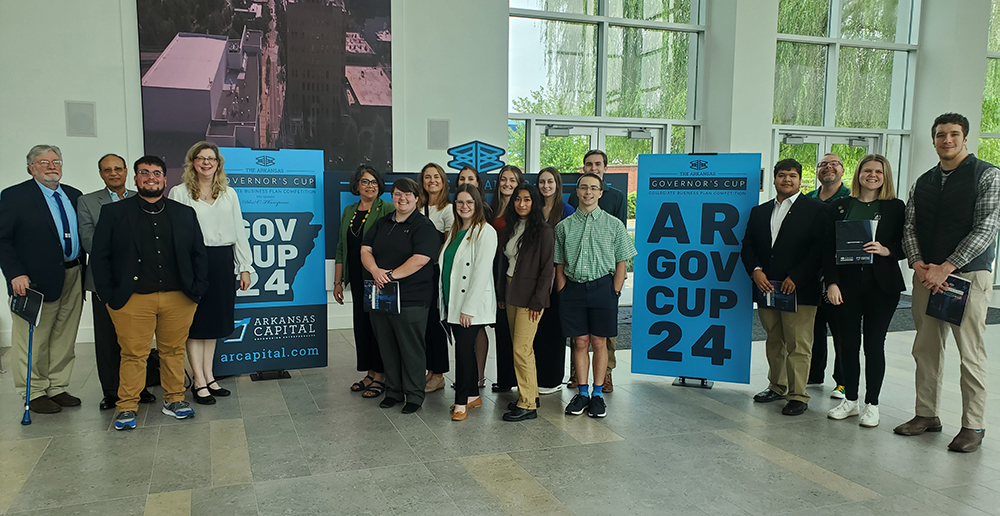 Twelve students and six faculty members from the Arkansas Tech University College of Business and Economic Development attended the 2024 Arkansas Governor’s Cup business plan competition finals on Wednesday, April 17, in Little Rock.