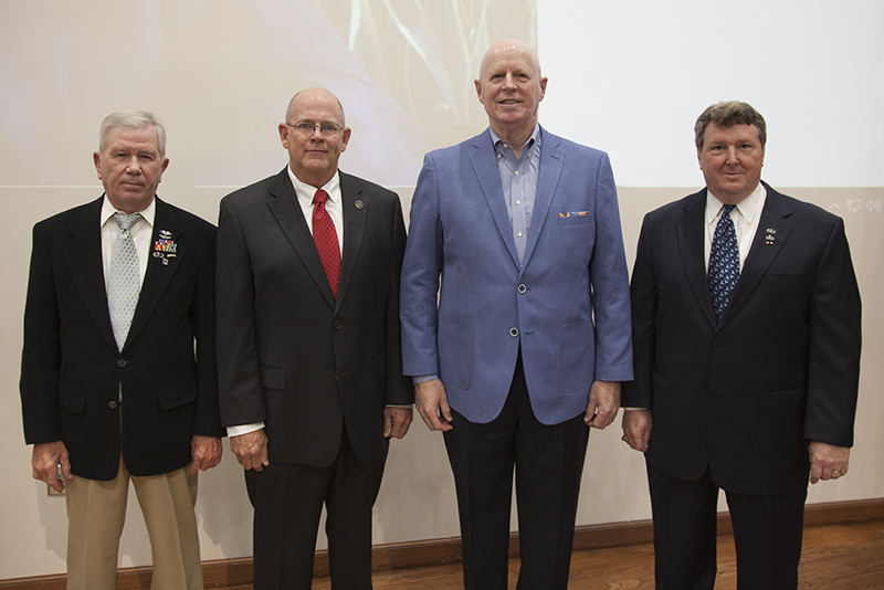 Photographed (from left-to-right): Lt. Col Edwin Williams, Col. David Dorrough, Col. Wayne Ruthven and Geoff Phillips (accepting on behalf of late father, Col. Robert Phillips). Not photographed (participated via distance technology): Col. Henry Brummett.