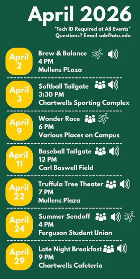 Arkansas Tech University Student Activities Board has announced a busy schedule of events for April 2026.