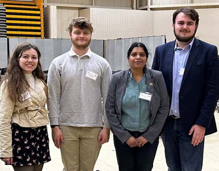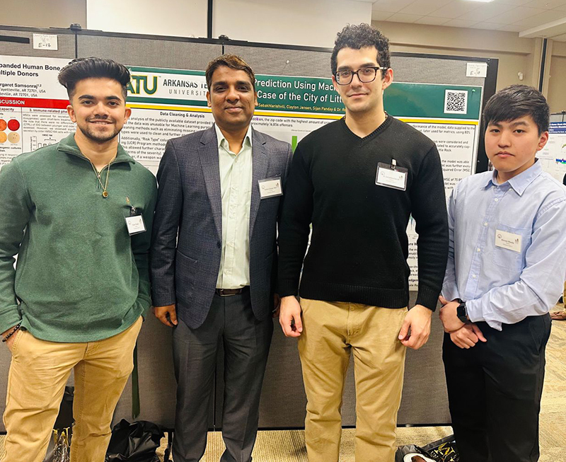 A team led by Zurab Sabakhtarishvili collected the first-place prize in the undergraduate poster presentation competition. Hiromi Honda, Clayton Jensen and Sijan Panday also contributed to the poster, which dealt with crime prediction in Little Rock using machine learning.