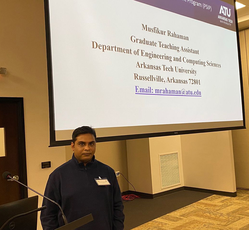 ATU student Musfikur Rahaman earned first place in the graduate oral presentation category. Rahaman is a graduate teaching assistant in the ATU Department of Engineering and Computing Sciences.