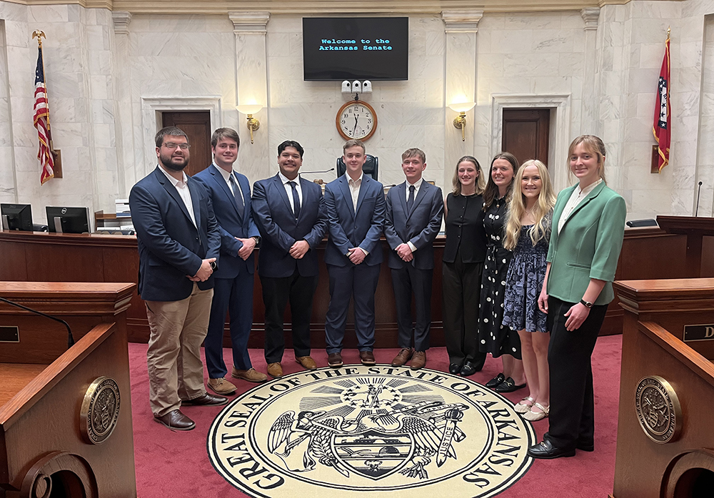 Nine leaders from the Arkansas Tech University student body participated in 2026 Student Government Day at the State Capitol in Little Rock on Friday, March 6.
