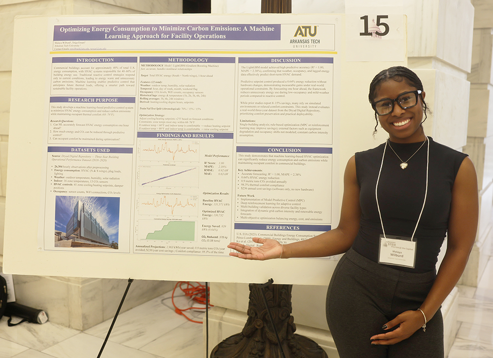 Students from the ATU College of Science, Technology, Engineering and Mathematics were among more than 100 university students from around the state who participated in Arkansas STEM Posters at the Capitol 2026 on Wednesday, March 4.