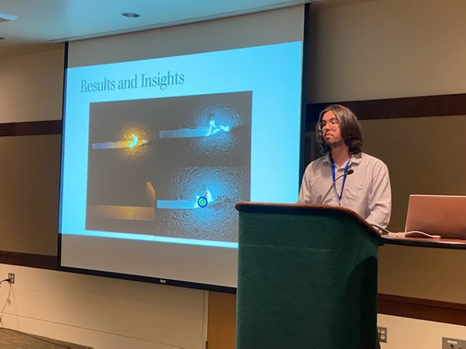 Arkansas Tech University students Derek Thompson of Greenbrier and Parker Padgett of Russellville were selected to present their research on the use of technology to predict wildfire behavior at the 2024 Institute of Electrical and Electronics Engineers World Artificial Intelligence and Internet of Things Congress.