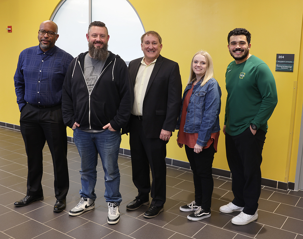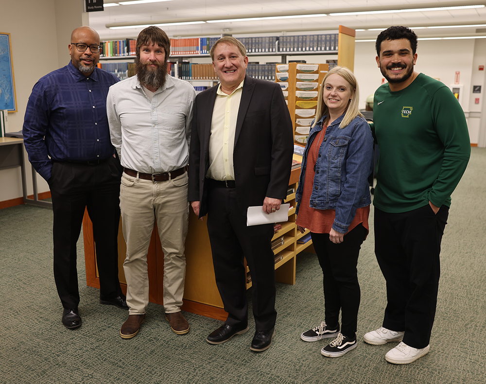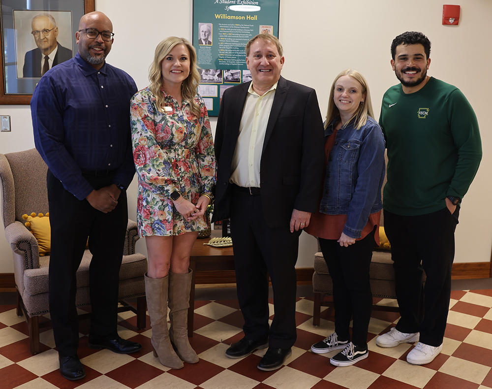 Photographed (from left-to-right): Eric Walker, Arkansas Tech University legal counsel and liaison from ATU executive council to ATU Staff Senate; Ryan Taylor, 2025 ATU outstanding employee of the year; Dr. Russell Jones, ATU president; Connie Herring, ATU Staff Senate vice president; and Kristian Thompson, ATU Staff Senate president.Photographed (from left-to-right): Eric Walker, Arkansas Tech University legal counsel and liaison from ATU executive council to ATU Staff Senate; Scott Tomlin, 2025 ATU service award winner; Dr. Russell Jones, ATU president; Connie Herring, ATU Staff Senate vice president; and Kristian Thompson, ATU Staff Senate president.Photographed (from left-to-right): Eric Walker, Arkansas Tech University legal counsel and liaison from ATU executive council to ATU Staff Senate; Caroline Kitchens, 2025 ATU community service award winner; Dr. Russell Jones, ATU president; Connie Herring, ATU Staff Senate vice president; and Kristian Thompson, ATU Staff Senate president.
