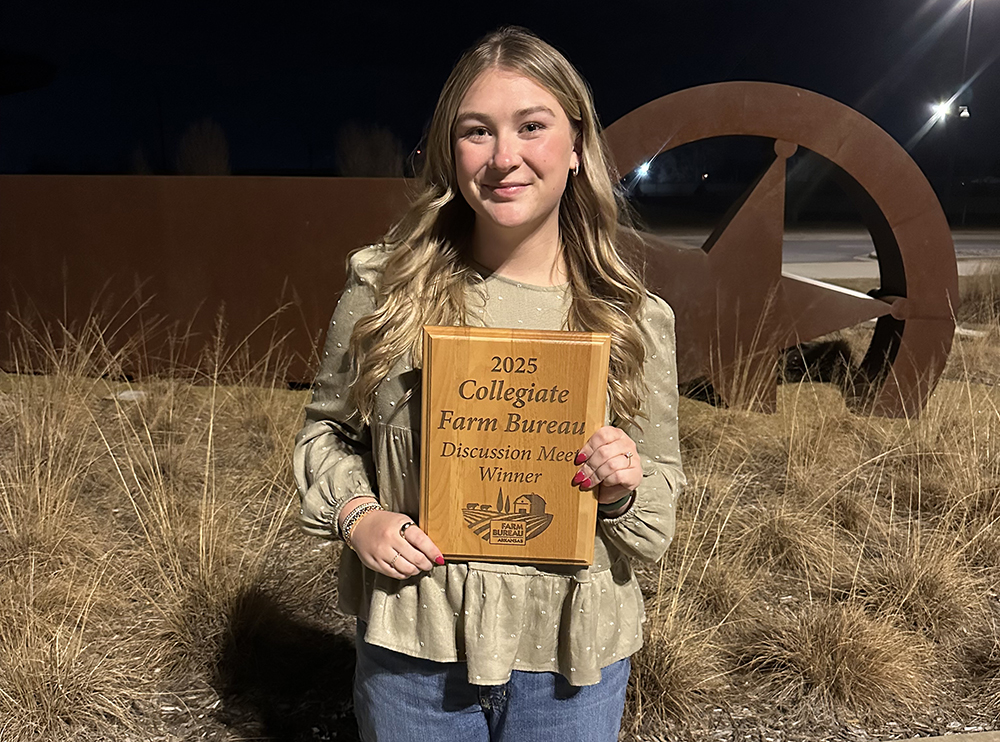 “Arkansas Farm Bureau has blessed me in so many ways over the years,” said Massey. “It is such an honor to represent the Arkansas Tech University Department of Agriculture and Tourism and bring home an award in something I’m so passionate about. I am so thankful for Farm Bureau and the Young Farmers and Ranchers Conference.”