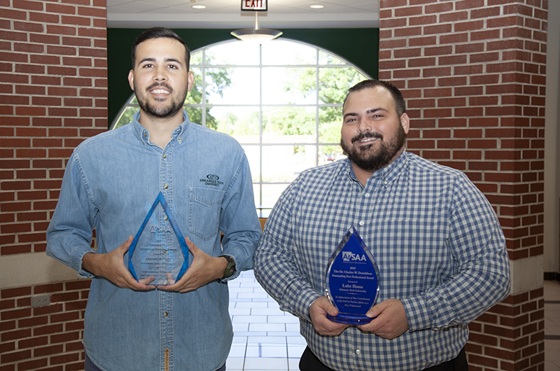Luke Hams (photographed, right), area coordinator in the ATU Department of Residence Life, was named the 2019 Dr. Charles W. Donaldson outstanding new professional of the year.