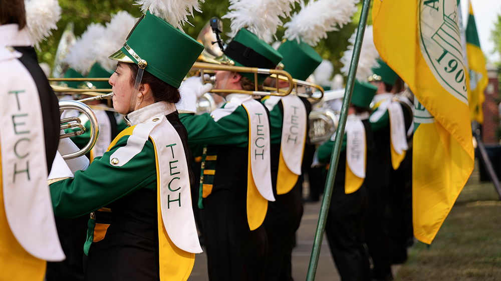 Arkansas’ Band of Distinction appears at ATU home football games and a variety of parades and marching exhibitions. The band includes 165 members for fall 2024.