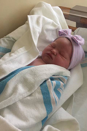 Casey Higgs Hamilton (PSY ’12) and Kolby Hamilton (CRJ ’15), a daughter, Adaline Grace, Sept. 6, 2017.