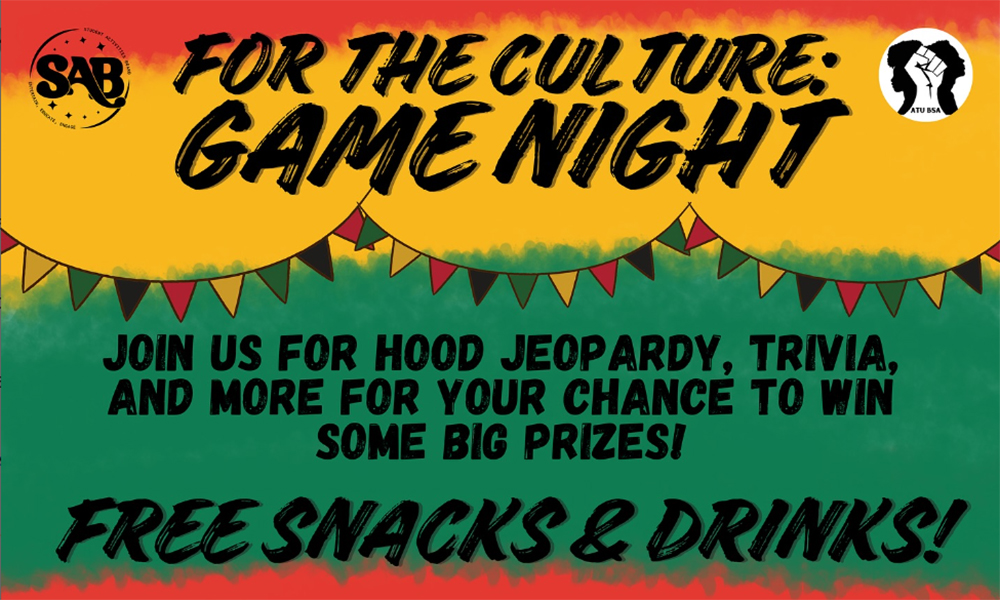Arkansas Tech University Black Student Association and ATU Student Activities Board will host an event entitled “For the Culture: Game Night” on Thursday, Feb. 22.