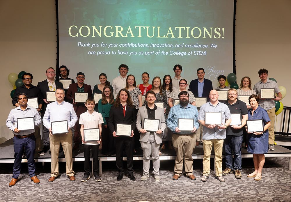 The Arkansas Tech University College of Science, Technology, Engineering and Mathematics (STEM) celebrated the achievements of its faculty and students during the 2025-26 academic year with an awards dinner at the Hull Building Event Center on Monday, April 27.