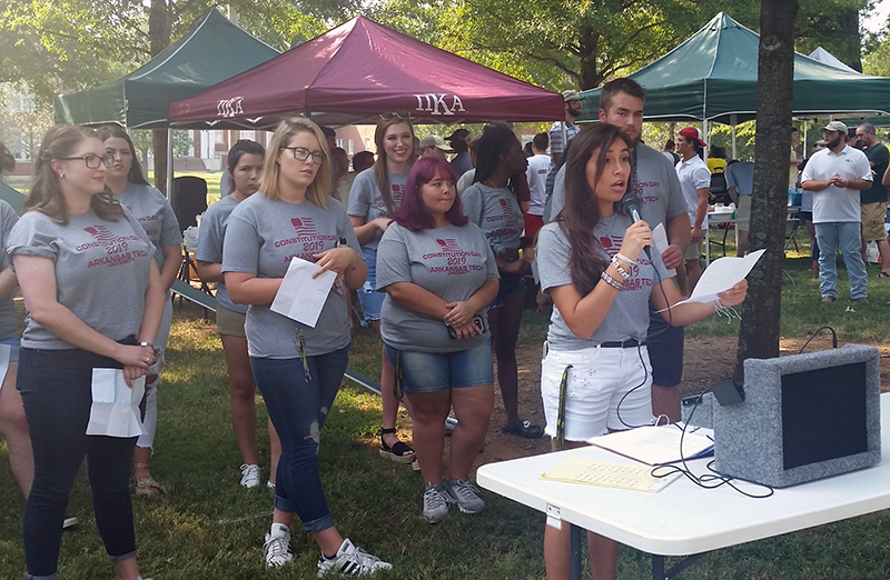 In addition to the reading of the U.S. Constitution on Saturday, Sept. 17, 60 ATU students have volunteered to teach constitution lessons to students at Russellville Junior High School and Dwight Elementary School on Friday, Sept. 16. In all, approximately 500 students from the Russellville School District will be exposed to U.S. Constitution content as a result of the project.
