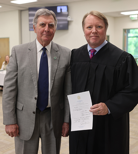 Len Cotton of Dardanelle was sworn in as a member of the Arkansas Tech University Board of Trustees by Judge Jay Patterson during a ceremony at ATU-Ozark Campus on Thursday, April 17.