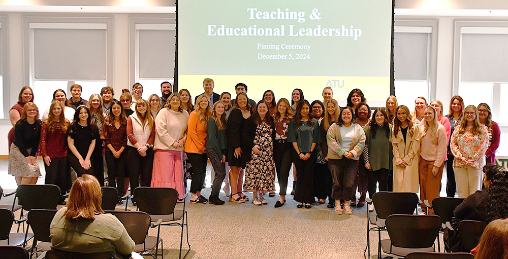 The Arkansas Tech University Department of Teaching and Educational Leadership hosted a pinning ceremony on Thursday, Dec. 5, for ATU early childhood education, elementary education, middle level education, secondary education and Master of Arts in Teaching students who are completing their graduation requirements during the fall 2024 semester.