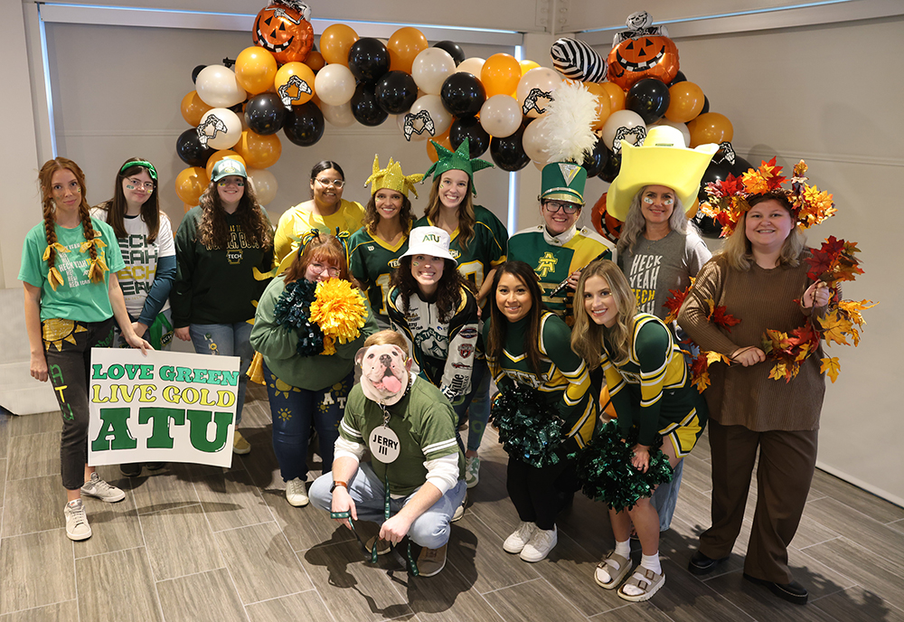 A panel of judges selected costume contest winners in three categories at the 2024 Arkansas Tech University faculty and staff Halloween party.