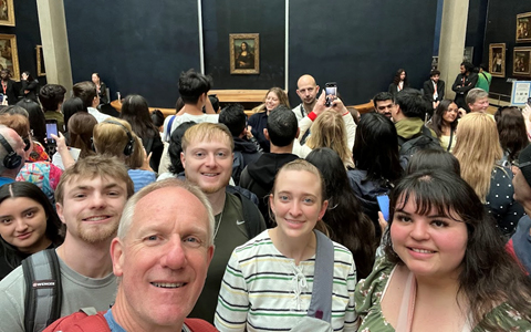 The Arkansas Tech delegation captured a selfie in front of the Mona Lisa at the Louvre.