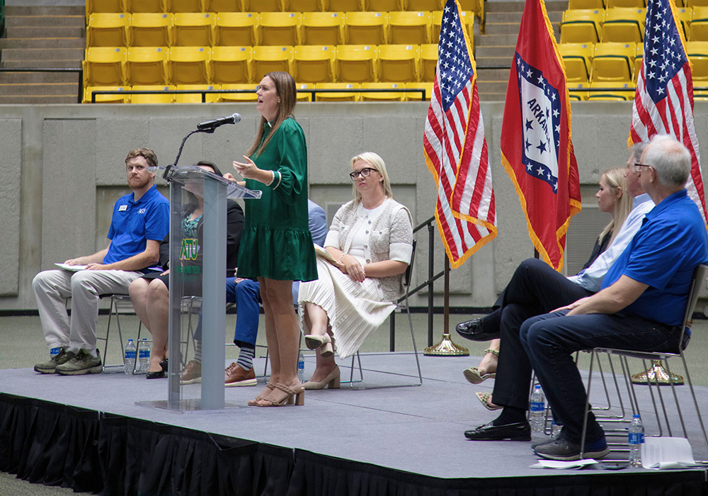 “It’s always an honor and a privilege to be here at Arkansas Tech’s campus,” said Sanders. “It’s exciting to join you here at a pivotal moment in your educational journey. The memories you make here can last a lifetime. You should cherish each of the four weeks you will have here on campus. You are among the very best and brightest from our state, selected from a hyper-competitive applicant pool to create the most enriching intellectual environment possible. You are going to discuss, learn and do amazing things over the course of the next month.”