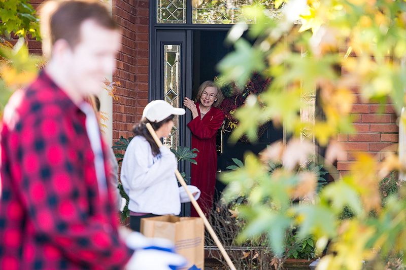 Approximately 300 ATU students participated in the 2018 Green and Gold Give Back. Among the local alumni who benefit from the program is Sue Stallings of Russellville, who has been greeted on multiple autumn Saturday mornings by a group of volunteers raking leaves in her yard.