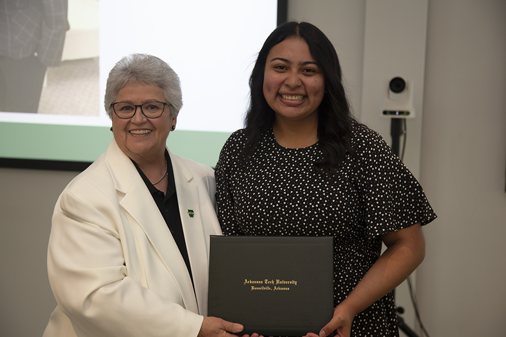 Blandy Pedrez of Russellville, who is pursuing the ATU Master of Education degree in school counseling and leadership, was introduced as the first recipient of the endowed scholarship.
