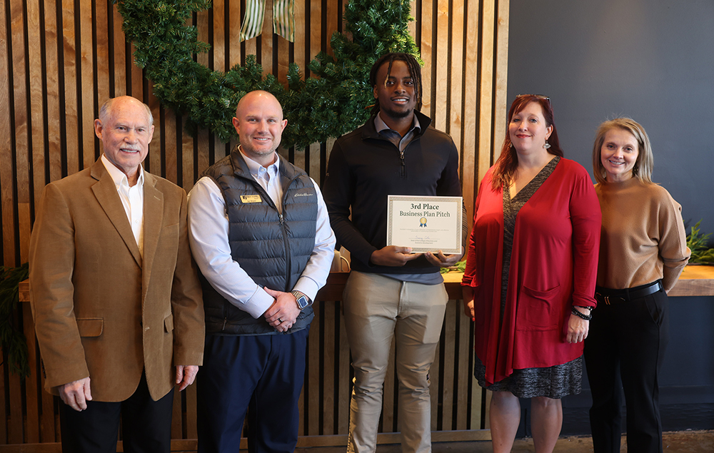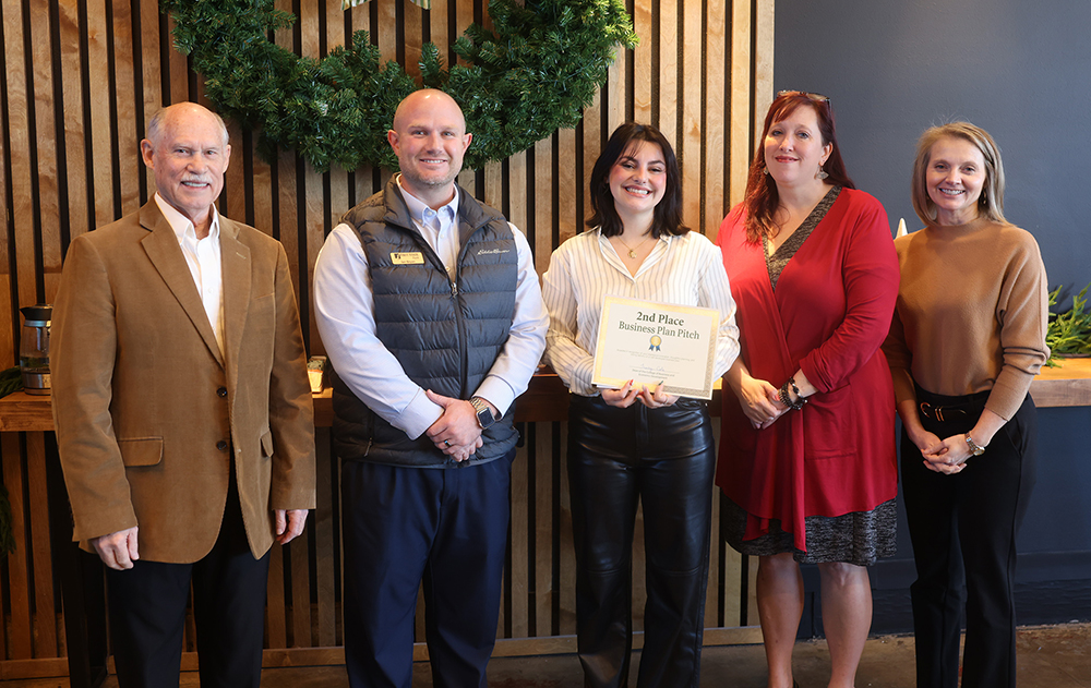 Ian Bryan, vice president for commercial lending at First State Bank; James Guhl, director of the Arkansas Small Business and Technology Development Center regional office at ATU; Danielle Housenick, executive director of Main Street Russellville; and Dr. Julie Mikles-Schluterman, ATU professor of sociology and director of the ATU Center for Community Engagement and Academic Outreach, selected Gunther’s concept as the best among all of the business ideas put forth by students in Cass Capen-Housley’s Entrepreneurial Management class for the fall 2025 semester.