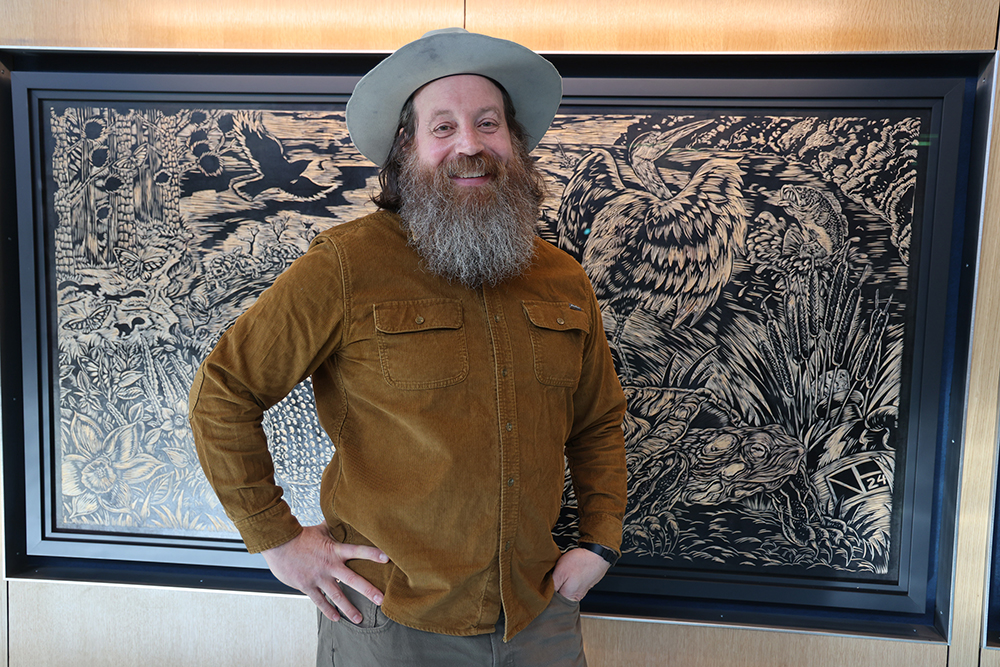 “Arkansas As Home” is three 3.5-foot-by-6-foot birch wood carved panels. The panels are entitled “Homegrown,” which depicts the mountainous regions of the Ouachitas and the Ozarks; “Down Home,” which features the wetland regions of the state; and “Home Sweet Home,” which tells a story from the delta region of east and southeast Arkansas.