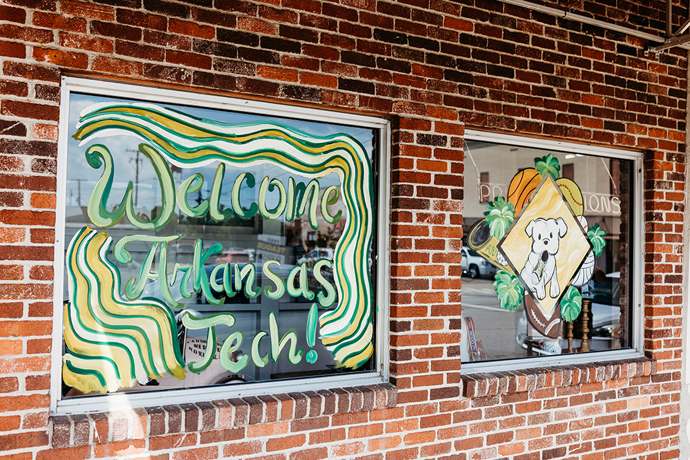 Businesses and organizations participating in Paint the Town Green and Gold will decorate the interior and/or exterior of their places of business in Arkansas Tech themes during the week of Aug. 14-18 in advance of ATU residence hall move-in day on Saturday, Aug. 19.