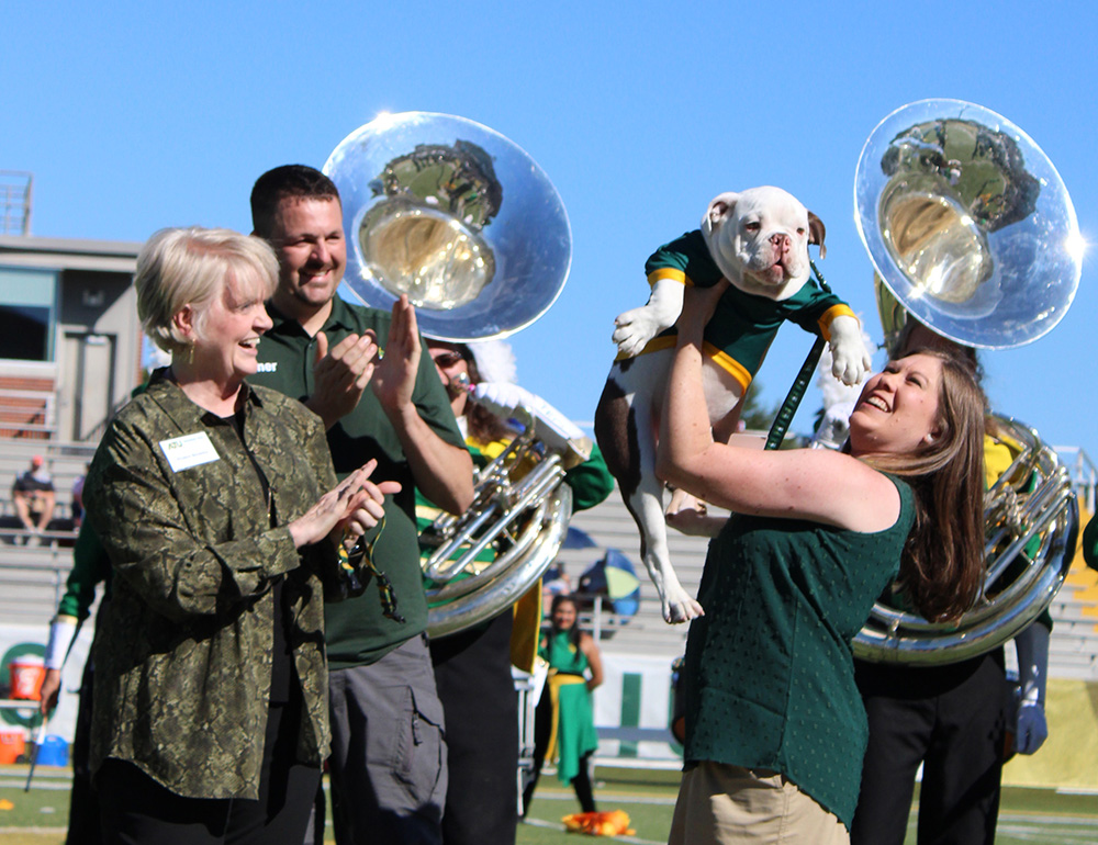 Jerry Charles Young II received his spiked collar and officially become the campus ambassador at Arkansas Tech University during a halftime ceremony at the Wonder Boys’ home football game on Saturday, Oct. 1.