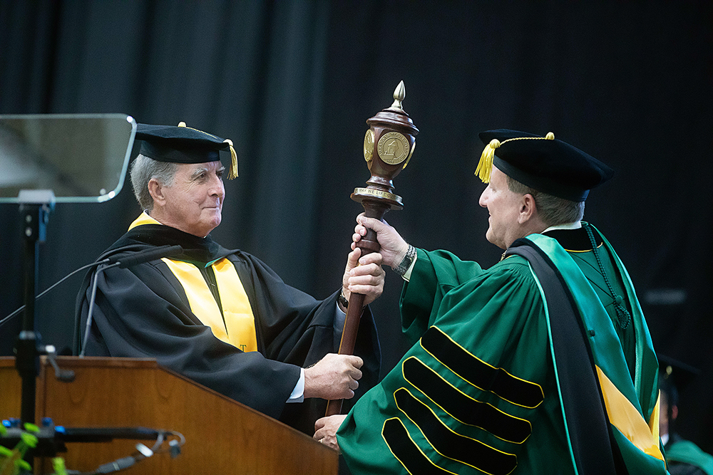 “I am also humbled when I look at the medallion around my neck and see the names of my 12 predecessors in this role,” continued Jones. “Each of them has worked diligently to build this university into what it is today.”
