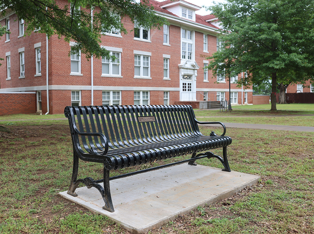 The ATU legacy bench effort was initiated by Arkansas Tech alumnus Robert Norman and his family. Over a span of multiple decades, the Norman family has contributed to the beautification of ATU through a number of projects, including the planting of more than 1,500 trees, the construction of Hindsman Tower and ongoing improvements to the lawn surrounding Hindsman Tower.