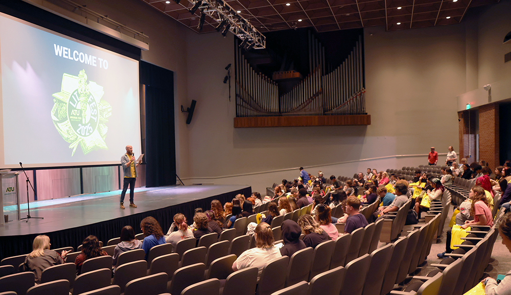 File photo from the opening session for Lit Fest 2025 at Arkansas Tech University's Witherspoon Auditorium.