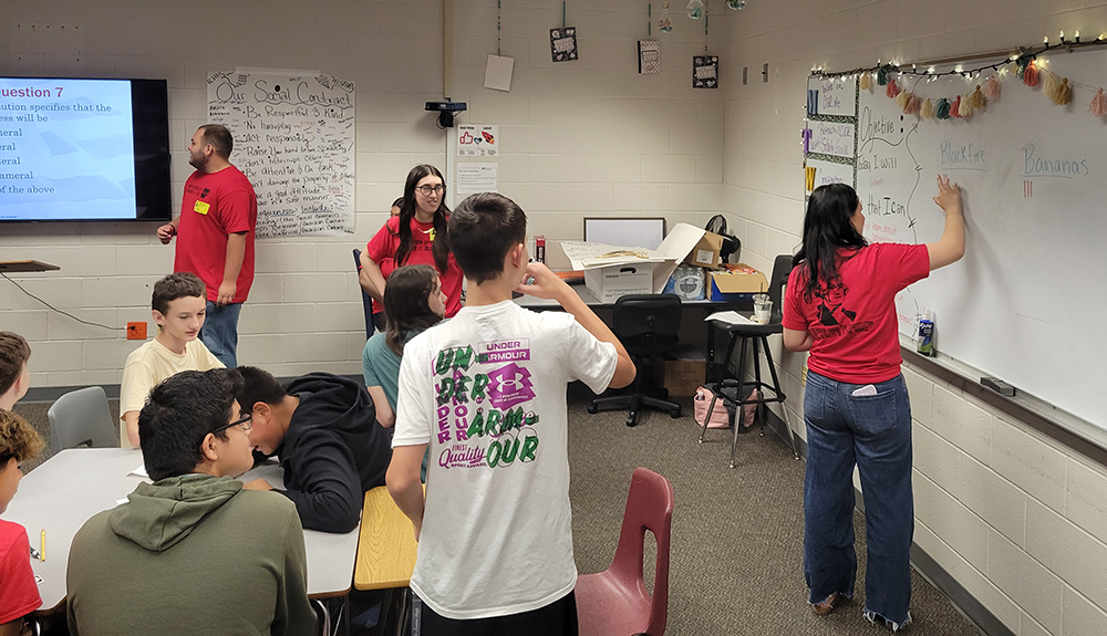 A glimpse inside one of the Russellville Junior High School classrooms where a lesson on the U.S. Constitution was taught by Arkansas Tech University students on Wednesday, Sept. 17.