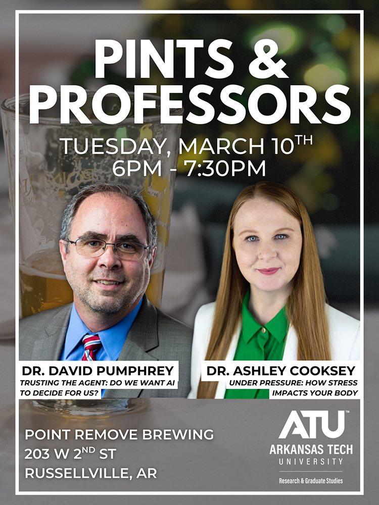Arkansas Tech University faculty members Dr. Ashley Cooksey and Dr. David Pumphrey will be the speakers at the Tuesday, March 10, edition of Pints and Professors at Point Remove at Central Fire Station in Russellville Downtown.