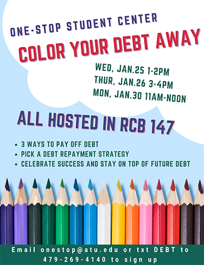 Arkansas Tech University’s One-Stop Student Center will offer a program entitled “Color Your Debt Away” to ATU students during the month of January.