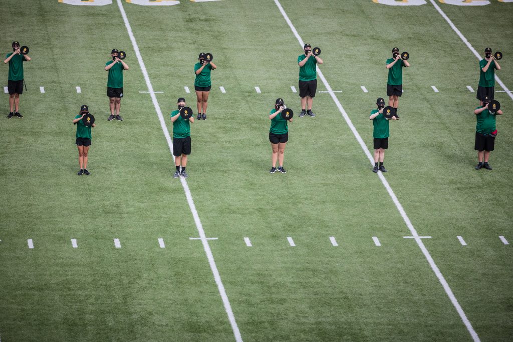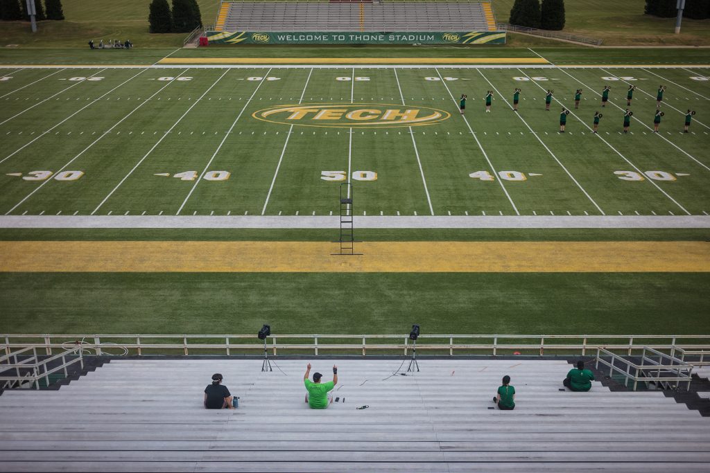 After the recordings were engineered by Michael Cotton (a friend of the band,) that cohesive track was played while individual sections marched their drills on the field at Thone Stadium.