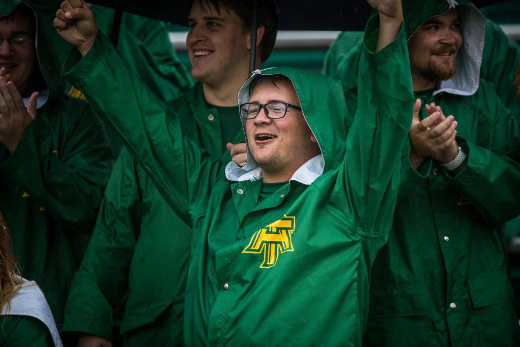 Barker, cheering on the Wonder Boys during a rainy football game in 2018.