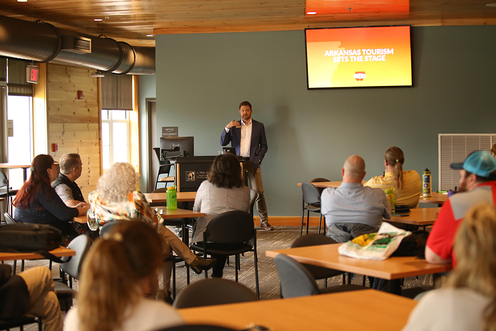 Travis Napper, director of tourism for the Arkansas Department of Parks, Heritage and Tourism, provided an overview of the current state of tourism in the Natural State during an appearance at Arkansas Tech University on Wednesday, April 5.