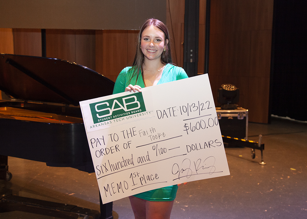 She won the annual talent competition for ATU students sponsored by ATU Student Activities Board by singing “Something in the Water” by Carrie Underwood.