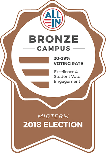 The ALL IN Campus Democracy Challenge is a nonpartisan, national initiative recognizing and supporting campuses as they work to increase nonpartisan democratic engagement and full student voter participation. The challenge encourages higher education institutions to help students form the habits of active and informed citizenship, and make democratic participation a core value on their campus.